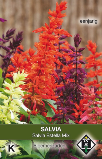 InfoEenjarig: Een rijk- en langbloeiend Salvia-mengsel met lange bloemaren in aanprekende kleuren.
